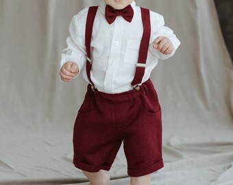 Page Boy Linen Suspender Shorts No Shirt Toddler Ring Etsy